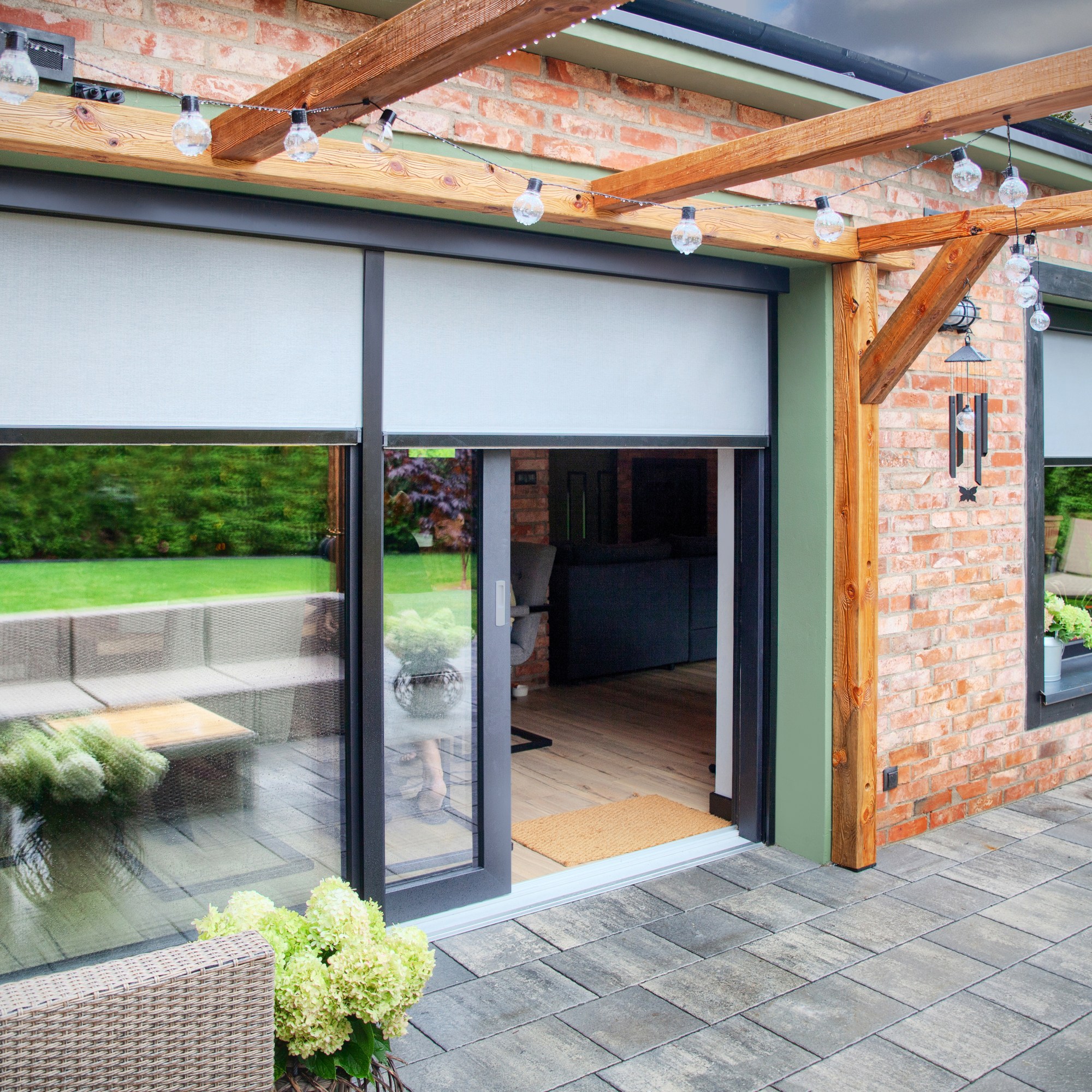 Screens zijn motor bediend en kunnen natuurlijk geïntegreerd worden met zon en windsensoren die automatisch openen en sluiten indien nodig.