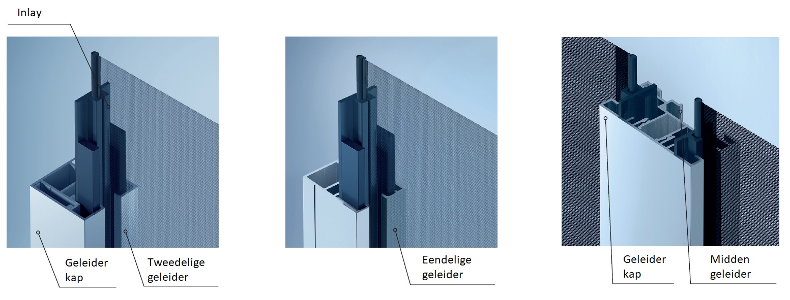 Onze SCREENS van merk Heroal zijn verkrijgbaar in cassettes in drie maten: 95, 105 en 125mm en drie vormen: schuin, vierkant en inbouw. Kasten 105 en 125mm zijn te krijgen met vlakke achterkant – voor bijvoorbeeld contra montage of normale achterkant voor montage met extra montage plat in het midden van de kast. Wij bieden vier types van geleiders aan: eendelige, tweedelige, tweedelige “contra” (met vlakke achterkant) en tweedelige midden geleiders; en twee types van onderlat: standaard type II en extra verzward type III die is werkt perfect bij grotere afdekingen. Als standaard, alle schroeven in het systeem zijn gemaakt van roestvrij staal. Keuze van de doeken is vrij breed: van huismerk doeken tot bekende merken zoals Copaco en Serge Ferrari, in verschillende doorzichtbaarheid varianten.